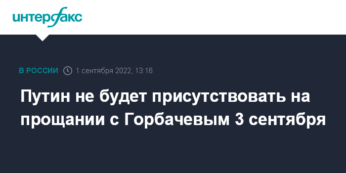 Путин не будет присутствовать на прощании с Горбачевым 3 сентября