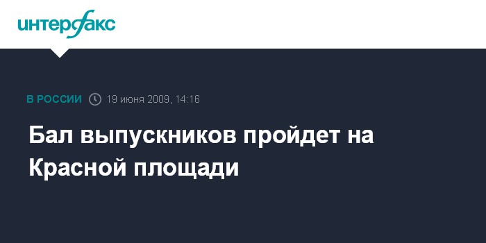 Москва. 19 июня. INTERFAX.RU - Управление делами президента РФ 23 июня проведет бал "Выпускник-2009" на Красной площади, в котором примут участие около 6000 лучших выпускников средних школ Москвы. Как заявил в пятницу "Интерфаксу" пресс-секретарь управделами президента Виктор Хреков, впервые ежегодный бал выпускников пройдет на Красной площади. Он также добавил, что предусмотрена грандиозная концертная программа.