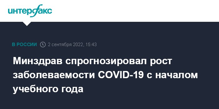 Москва. 2 сентября. INTERFAX.RU - В России прогнозируется подъем заболеваемости коронавирусом COVID-19 с началом учебного года, сообщил глава Минздрава РФ Михаил Мурашко.