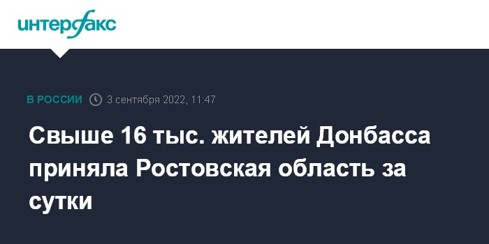 Москва. 3 сентября. INTERFAX.RU - Через пункты пропуска в Ростовскую область с территории Донбасса за последние сутки прибыли более шестнадцати тысяч человек, сообщает пресс-служба регионального погрануправления ФСБ в субботу.