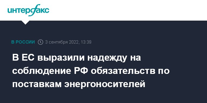 В ЕС выразили надежду на соблюдение РФ обязательств по поставкам энергоносителей