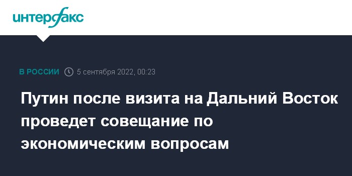Москва. 5 сентября. INTERFAX.RU - Президент РФ Владимир Путин после возвращения с Дальнего Востока проведет совещание по экономике, заявил его пресс-секретарь Дмитрий Песков.