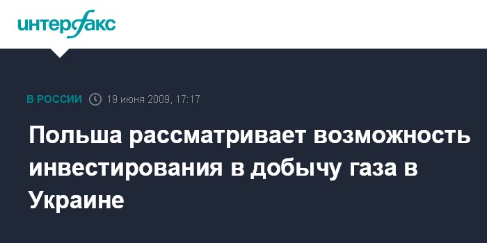 Москва. 19 июня. INTERFAX.RU - Польские компании рассматривают возможность инвестирования в добычу газа в Украине, заявил вице-премьер по вопросам евроинтеграции Григорий Немыря. Характеризуя на пресс-конференции в пятницу в Киеве возможности украинско-польского сотрудничества в энергетической сфере, он сказал, что частью этого вопроса является увеличение собственной газодобычи с привлечением польского капитала.