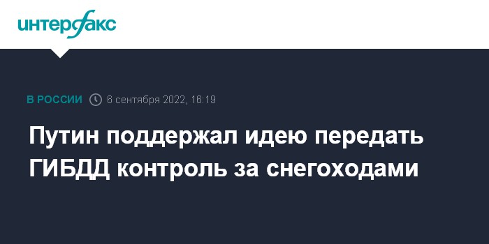 Москва. 6 сентября. INTERFAX.RU - Президент РФ Владимир Путин поддержал идею упростить процедуру получения прав на управление снегоходом и передать регулирование этого вопроса в ГИБДД.