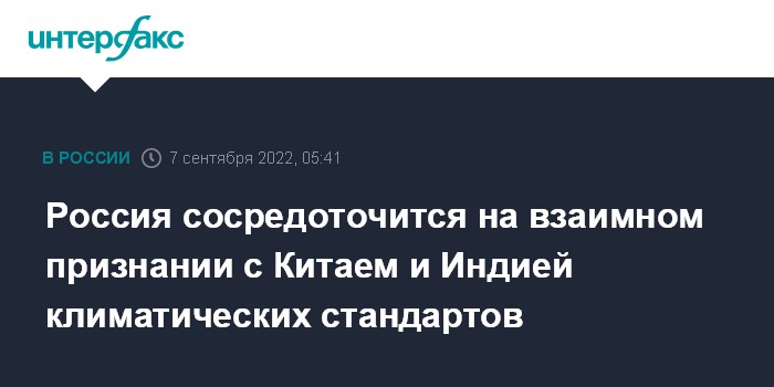 Россия сосредоточится на взаимном признании с Китаем и Индией климатических стандартов