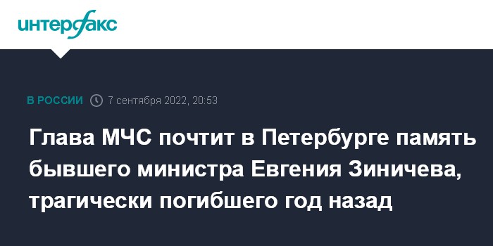 Глава МЧС почтит в Петербурге память бывшего министра Евгения Зиничева, трагически погибшего год назад