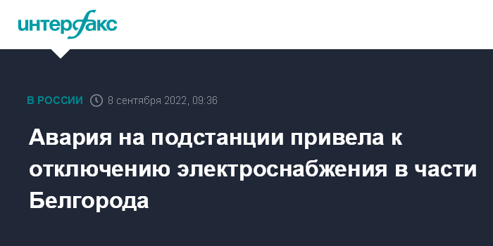 Москва. 8 сентября. INTERFAX.RU - Третья часть Белгорода осталась без света и воды ночью в четверг из-за аварийного отключения подстанции 110 кВ "Южная", сообщают власти.