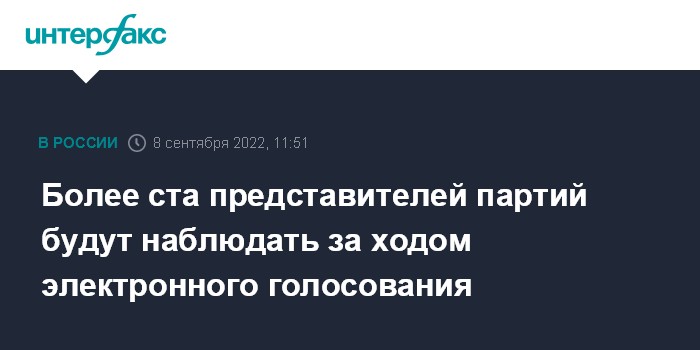 Москва. 8 сентября. INTERFAX.RU - Глава ЦИК Элла Памфилова сообщила, что свыше ста наблюдателей от политических партий будут следить за ходом дистанционного голосования на предстоящих выборах.