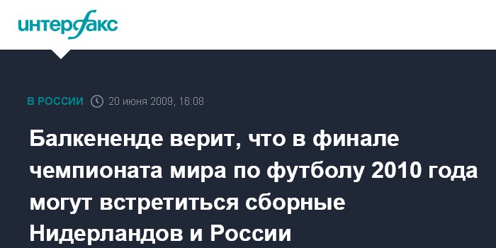 Балкененде верит, что в финале чемпионата мира по футболу 2010 года могут встретиться сборные Нидерландов и России