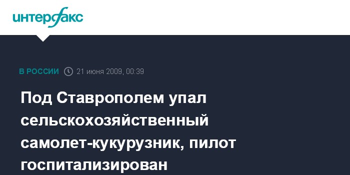 Как сообщили агентству "Интерфакс-Юг" в ипатовском РОВД, сообщение о пришествии поступило в милицию около 21:00 мск субботы из ЦРБ, куда был госпитализирован пилот.