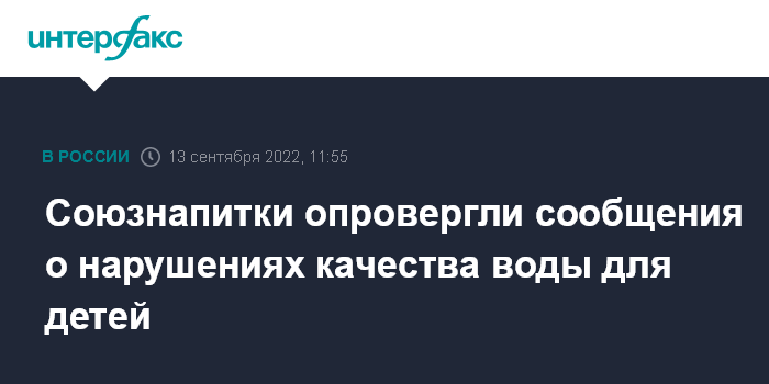 Москва. 13 сентября. INTERFAX.RU - Союз производителей соков, воды и напитков (Союзнапитки) отрицает нарушения качества детской воды, в оценке ее качества ориентируются на официальные данные Роспотребнадзора.