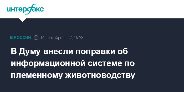Москва. 14 сентября. INTERFAX.RU - Группа депутатов внесла в Госдуму законопроект № 194262-8 о создании с 1 марта 2026 года федеральной информационной системы в области племенного животноводства и об изменении с марта 2023 гоа требований к импорту племенного материала.