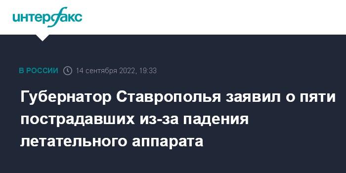 Губернатор Ставрополья заявил о пяти пострадавших из-за падения летательного аппарата