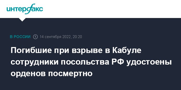 Погибшие при взрыве в Кабуле сотрудники посольства РФ удостоены орденов посмертно