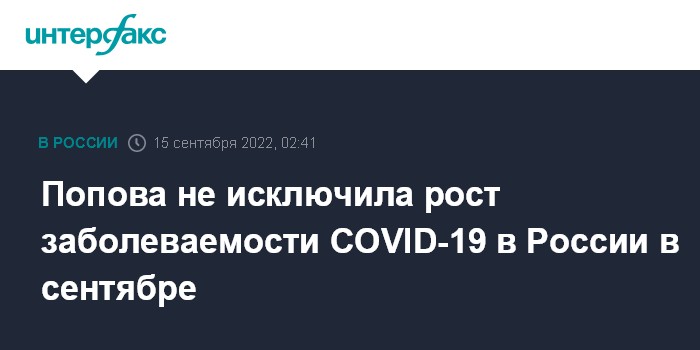 Москва. 15 сентября. INTERFAX.RU - Глава Роспотребнадзора Анна Попова не исключила нового роста заболеваемости коронавирусом в осенний период, он может быть связан с возвращением граждан из отпусков и детей со школьных каникул.