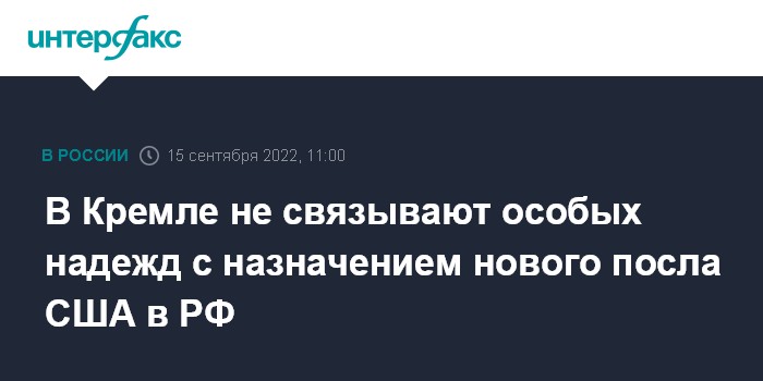 Москва. 15 сентября. INTERFAX.RU - Кремль не питает никаких надежд в связи с грядущим назначением нового посла США в Москве, сообщил пресс-секретарь президента РФ Дмитрий Песков.