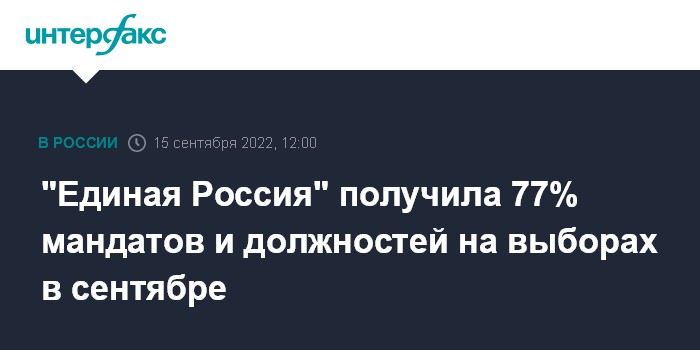 "Единая Россия" получила 77% мандатов и должностей на выборах в сентябре
