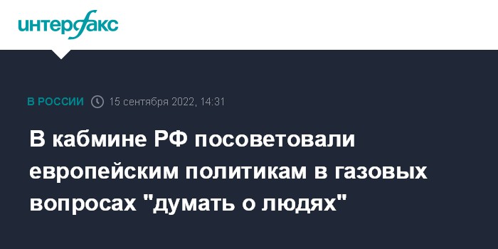 В кабмине РФ посоветовали европейским политикам в газовых вопросах "думать о людях"