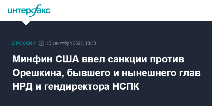 Минфин США ввел санкции против Орешкина, бывшего и нынешнего глав НРД и гендиректора НСПК