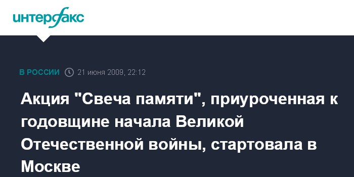 Акция "Свеча памяти", приуроченная к годовщине начала Великой Отечественной войны, стартовала в Москве