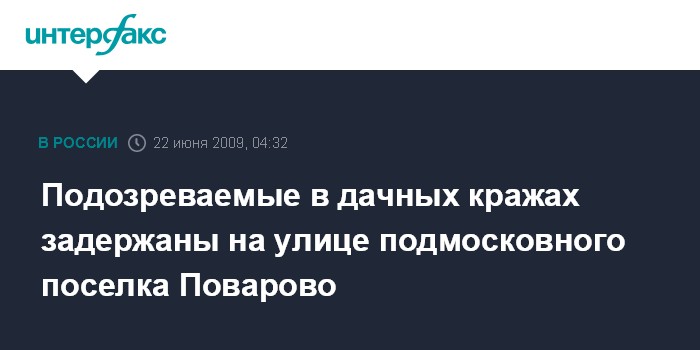 Москва. 22 июня. ИНТЕРФАКС-МОСКВА - Трое подозреваемых в совершении серии краж из дачных домов задержаны в ночь на понедельник в поселке Поварово Солнечногорского района Подмосковья.