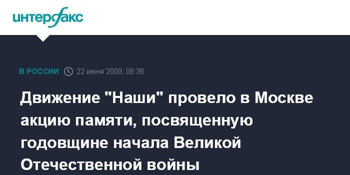Движение "Наши" провело в Москве акцию памяти, посвященную годовщине начала Великой Отечественной войны