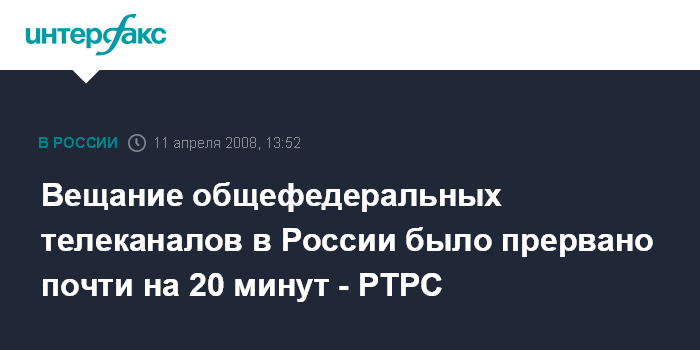 Вещание общефедеральных телеканалов в России было прервано почти на 20 минут - РТРС