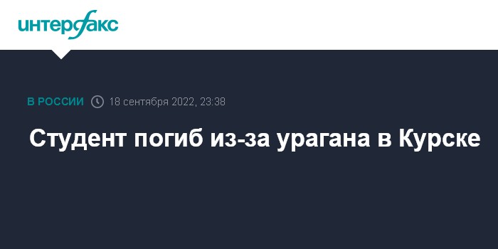 Москва. 18 сентября. INTERFAX.RU - Следователи организовали проверку по факту гибели студента в результате урагана, сообщает СУ СКР по региону.