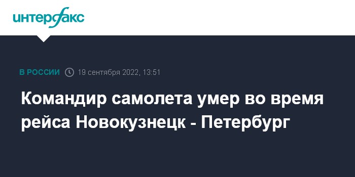 "Установлено, что 18 сентября в 23 часа по местному времени воздушное судно, следовавшее сообщением Новокузнецк - Санкт-Петербург, экстренно приземлилось на запасной аэропорт в Омске из-за плохого самочувствия командира воздушного судна. (...) Несмотря на оказанную медицинскую помощь, мужчина скончался", - говорится в сообщении.