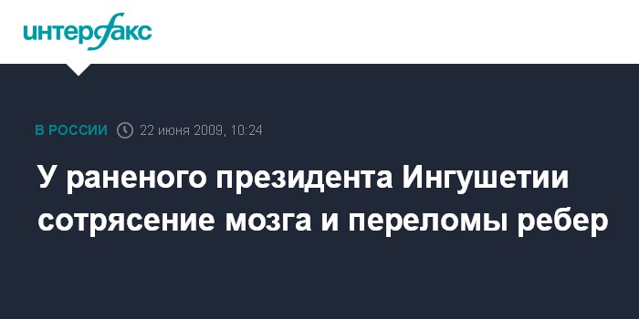 Как сообщил агентству "Интерфакс-Юг" представитель больницы, в результате взрыва президент Ингушетии "получил сильное сотрясение мозга и несколько переломов ребер".