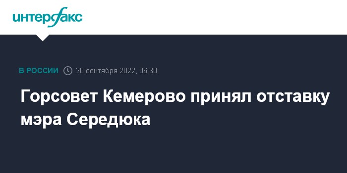 Москва. 20 сентября. INTERFAX.RU - Члены горсовета города Кемерово на внеочередном собрании во вторник приняли отставку мэра Ильи Середюка, который займет пост председателя правительства Кузбасса, передает корреспондент "Интерфакса".