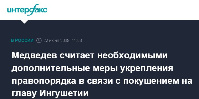 Медведев считает необходимыми дополнительные меры укрепления правопорядка в связи с покушением на главу Ингушетии