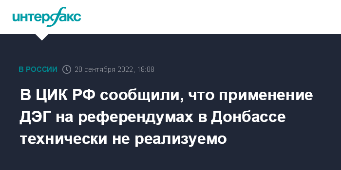 В ЦИК РФ сообщили, что применение ДЭГ на референдумах в Донбассе технически не реализуемо