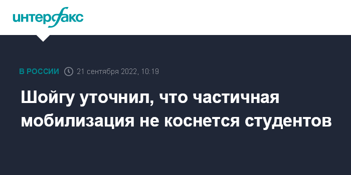 Шойгу уточнил, что частичная мобилизация не коснется студентов