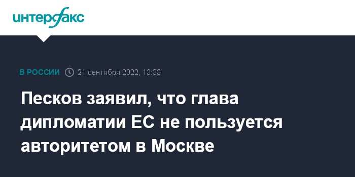 Москва. 21 сентября. INTERFAX.RU - Пресс-секретарь президента РФ Дмитрий Песков заявил, что глава европейской дипломатии Жозеп Боррель не пользуется в Кремле должным авторитетом в связи с ранее сделанными им непозволительными заявлениями.