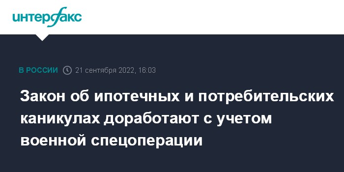 Закон об ипотечных и потребительских каникулах доработают с учетом военной спецоперации