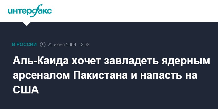 Дубай. 22 июня. INTERFAX.RU - Международная террористическая организация "Аль-Каида" планирует захватить пакистанское ядерное оружие и использовать его против США, заявил в интервью арабскому телеканалу "Аль-Джазира" командующий операциями "Аль-Каиды" в Афганистане Мустафа Абу аль-Язид.