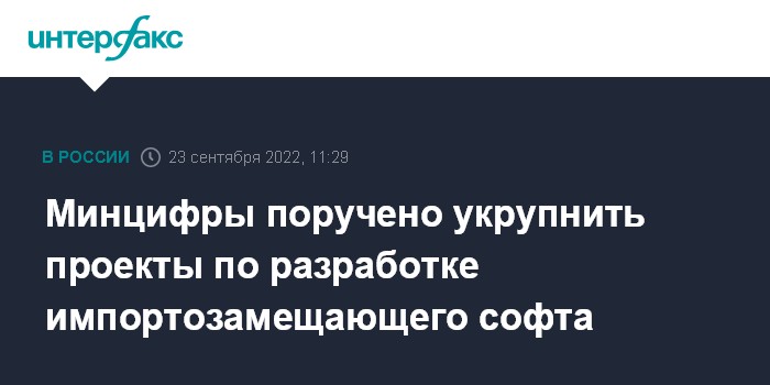Москва. 23 сентября. INTERFAX.RU - Правительство поручило Минцифры проработать укрупнение проектов по разработке российского софта на базе отраслевых индустриальных центров компетенций (ИЦК) по замещению зарубежных отраслевых цифровых продуктов и решений и центров компетенций по развитию общесистемного и прикладного ПО.