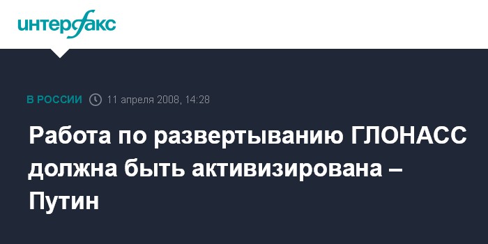 Как отметил В.Путин, "особое внимание следует уделить и развертыванию до полного состава системы ГЛОНАСС с широким внедрением соответствующей наземной навигационной аппаратуры среди пользователей".
