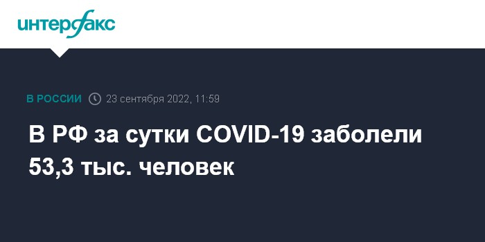 Москва. 23 сентября. INTERFAX.RU - Суточный прирост новых заболевших коронавирусной инфекцией в РФ составил почти 53,3 тыс. случаев, следует из данных оперативного штаба.