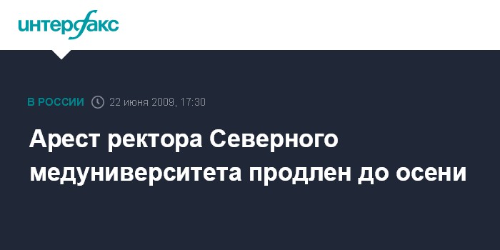 Москва. 22 июня. INTERFAX.RU - Октябрьский районный суд Архангельска принял решение о продлении срока содержания под стражей ректора Северного государственного медицинского университета (СГМУ) Павла Сидорова до 28 августа 2009 года. Как сообщает пресс-служба Управления Судебного департамента области, таким образом суд удовлетворил ходатайство стороны обвинения, которая мотивировала необходимость продления срока ареста "большим объемом следственных мероприятий".