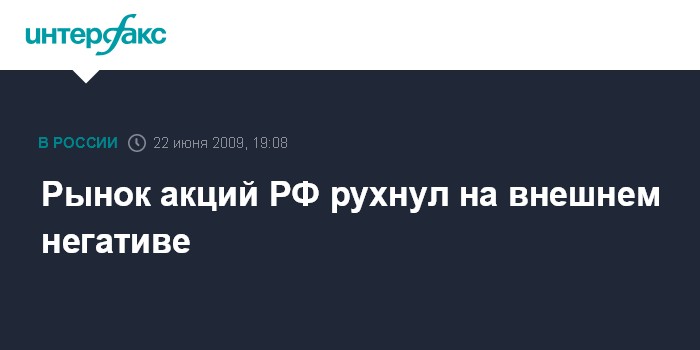 Москва. 22 июня. INTERFAX.RU - Российский рынок акций в понедельник по темпам падения индексов обогнал все мировые фондовые площадки, рухнув из-за массированных распродаж по всем секторам на негативном внешнем фоне; обвал возглавили банковские акции, рухнувшие более чем на 10%.