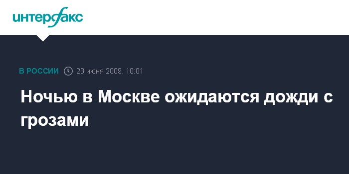 Москва. 23 июня. INTERFAX.RU - Ближайшей ночью в столице пройдут сильные дожди с грозами, сообщили во вторник "Интерфаксу" в Гидрометеобюро Москвы и Московской области.