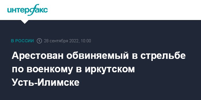 Москва. 28 сентября. INTERFAX.RU - Усть-Илимский городской суд в Иркутской области арестовал до 26 ноября местного жителя, обвиняемого по уголовному делу о стрельбе в военкомате, сообщили "Интерфаксу" в пресс-службе суда.