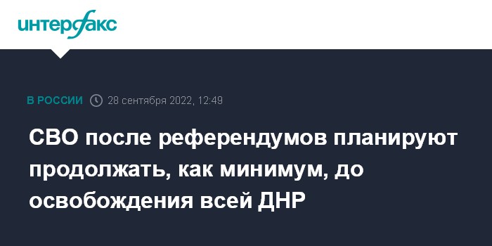 СВО после референдумов планируют продолжать, как минимум, до освобождения всей ДНР