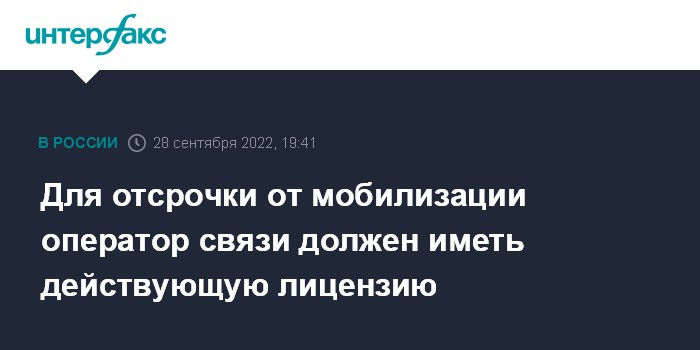 Для отсрочки от мобилизации оператор связи должен иметь действующую лицензию