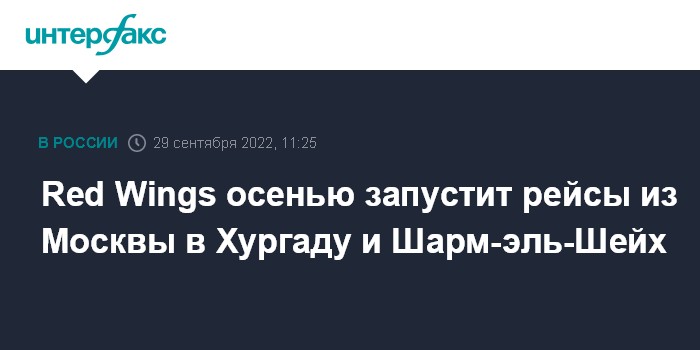 Москва. 29 сентября. INTERFAX.RU - Авиакомпания Red Wings этой осенью запустит регулярные рейсы из Москвы в египетские курортные города Хургаду и Шарм-эль-Шейх.