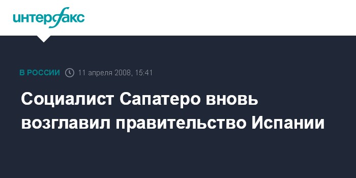 Мадрид. 11 апреля. INTERFAX.RU - Социалист Хосе Луис Родригес Сапатеро сегодня официально вступил в должность председателя испанского правительства на очередной четырехлетний срок.