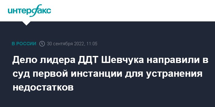 Дело лидера ДДТ Шевчука направили в суд первой инстанции для устранения недостатков