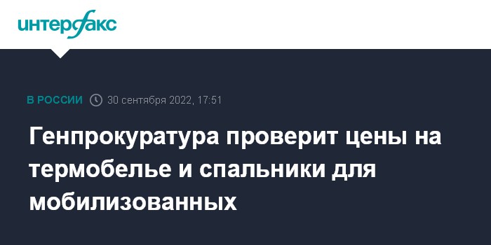 Генпрокуратура проверит цены на термобелье и спальники для мобилизованных